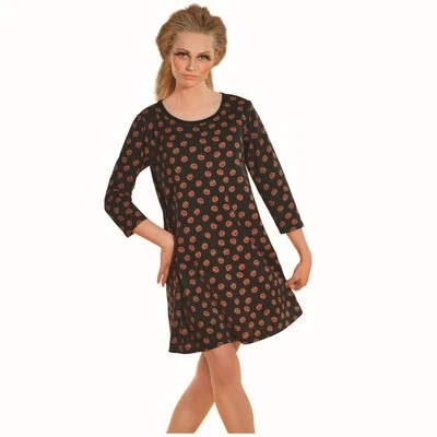 Add a creepy twist to the Halloween bash with this pumpkin dress! This trendy outfit will help you create a fashionista image. Enjoy the monster night in style with your friends.Product Features:Woman adult pumpkin Halloween costumeComes in pumpkins pattern all over the costumeKnee length dress with 3/4 sleevePerfect for Halloween and other themed partiesSizing Measurements:Woman’s Size: MediumWomen’s US Size: 8-10Material(s): polyester and cottonNote: does not include footwear